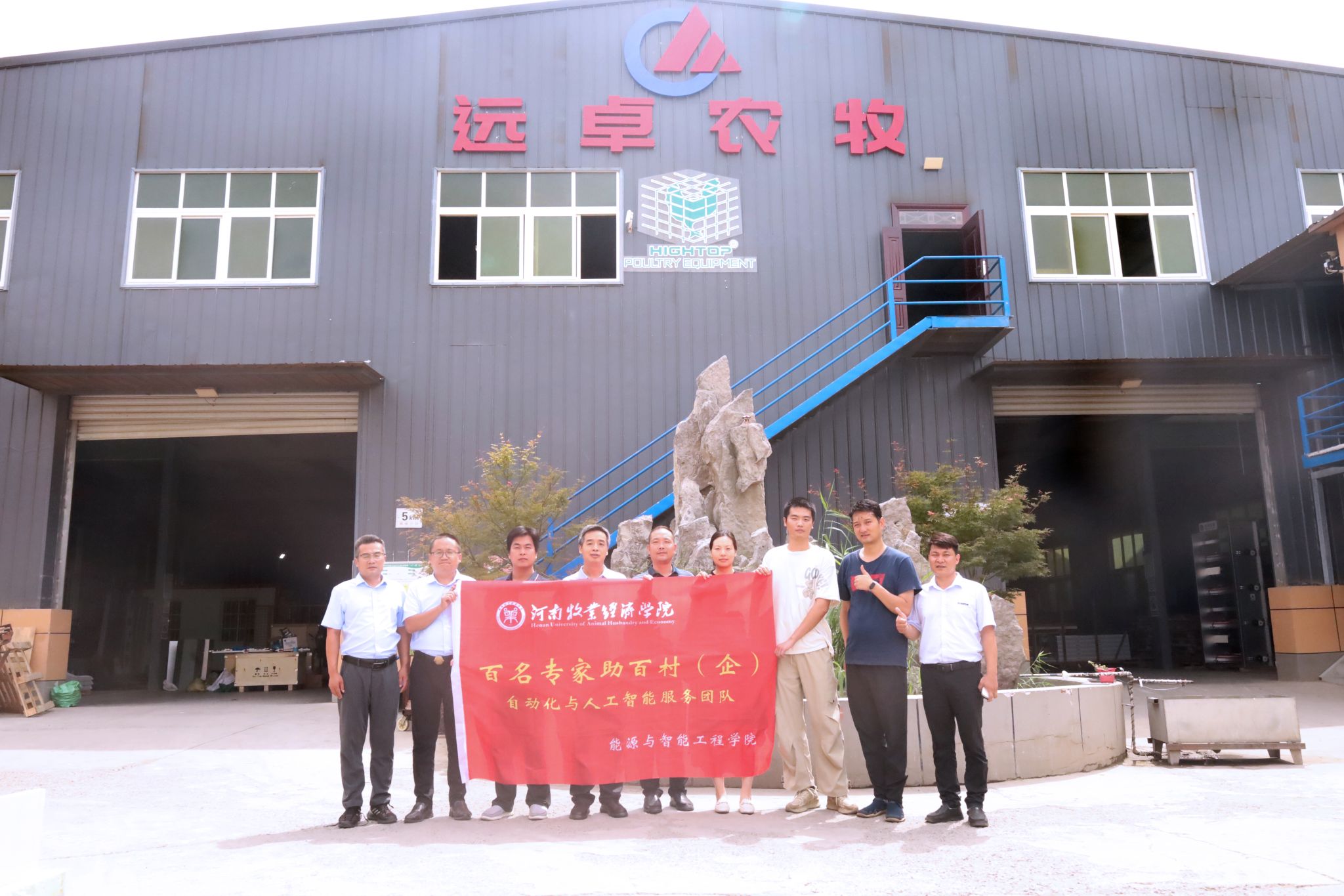 为深入贯彻“百名专家助百村(企)”工程(“双百”工程),充分发挥高校学科与专业优势,助力河南省智慧牧业技术创新与产业高质量发展,8月15日,太阳成集团tyc33455人工智能教研室教师杨志晓、张冰,以及信息工程学院教师王飞一行,赴郑州远卓农牧设备有限公司开展“双百”服务与技术合作洽谈。公司总经理王军,研发部马行坡、马峰涛、王星程,销售总监丁证伟,电商推广主管黑培鑫等热情接待并陪同参观交流。