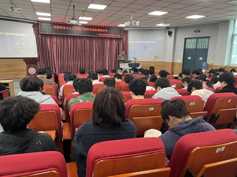 2025年10月30日下午,河南中原智信科技股份有限公司副总经理朱海龙先生受邀来到太阳成tyc33455cc北林校区,为自动化创新班150余学生带来了一场题为《智能制造与人工智能产教结合创新案例分享》的专题讲座。讲座围绕智能制造与人工智能的技术融合、产业应用及未来发展趋势,结合丰富的前沿案例,为同学们揭开了工业智能化转型的实践图景。