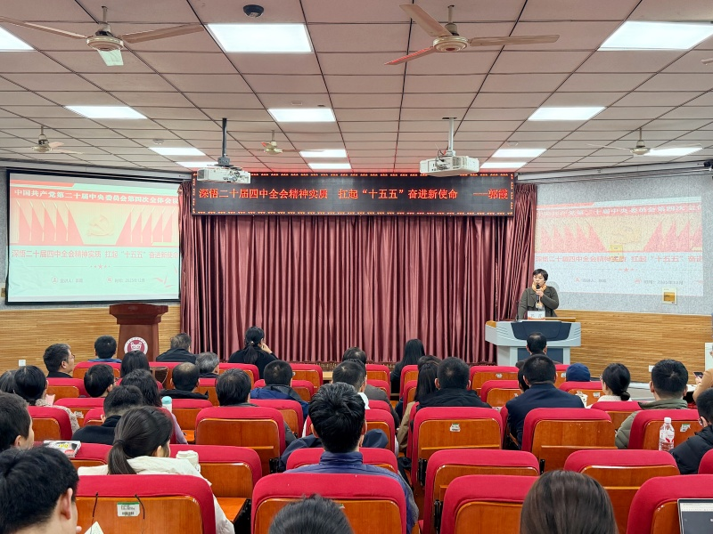 12月11日下午,北林校区学院在教学楼A200举办专题学习讲座,深入学习贯彻党的二十届四中全会精神。马克思主义学院副院长郭霞以“深悟党的二十届四中全会精神实质 扛起‘十五五’奋进新使命”为题作辅导报告。我院全体教职工,以及软件学院、继续教育学院相关领导与教职工参加学习。讲座由我院党委书记赵贺然主持。