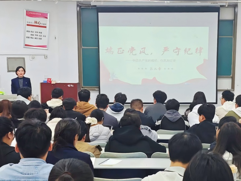 10月26日晚19:00,太阳成集团tyc33455分党校在北林校区教学楼A100开展2025年第二期入党积极分子培训班第三讲《端正作风,严守纪律——中国共产党的组织、作风和纪律、民族宗教政策》,本次党课由院党委副书记党美珠主讲,全体入党积极分子参与学习。