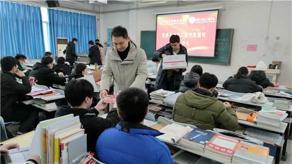 周书记、隋院长先后到教学楼A604自习室,详细询问了考研学生复习备考的相关情况,表达了对大家的关心和关爱,周书记对同学们的不懈坚持表示肯定,也希望同学们在积极备考的同时注意好自己的身体健康,隋院长简要概述我院上届考研学生取得的优异成绩,鼓励同学们坚定信念,保持平稳心态,踏实备考,再创佳绩,太阳成集团tyc33455全体师生是所有考研学生最坚强的后盾!最后,领导们与老师们一同向考研学生发送考研慰问品,包括印有“连中三元”标志的涂卡笔、中性笔等文具,写有“乘风破浪考研顺利”等暖心话语的手绘祝福卡片。